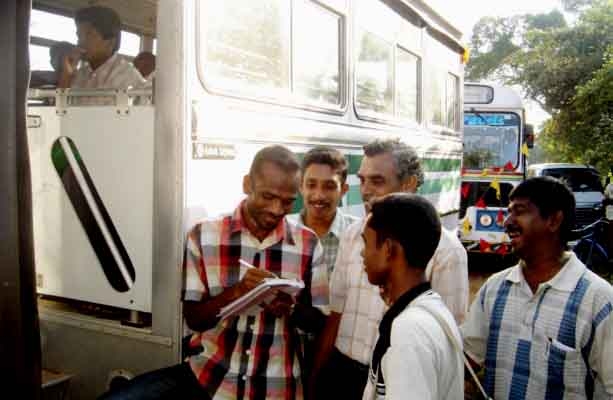 First passenger being given ticket.