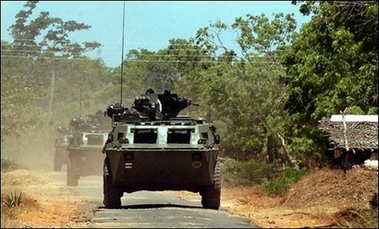 Sri Lankan army vehicles roll through Kallar, near the northeastern town of Trincomalee. (AFP)