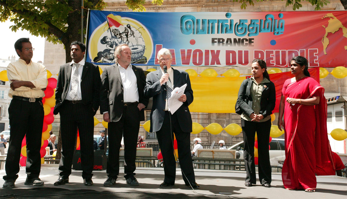 French politician addressing the rally