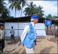 work of the transit camp. Mr McKinley and his team arrived Muttur by special helicopter and were received by Mr.K.Nadarajah, Muttur Divisional Secretary and Mr.Muralitharan, IOM Trincomalee Project Officer. Later Mr. McKinley held discussions with Mr.Nadaraja about the needs of tsunami victims and their livelihood facilities.