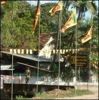 Black flags were hoisted in many parts of the Sri Lanka's northeast in protest against the country's independence day. Jaffna University students flew black flags and decorated University's main entrance with curry plantain trees which are used by Tamils at funerals. Sri Lanka army soldiers were deployed in the area, as the military beefed up security in many parts of the northern peninsula. Sri Lankan Army and the Police were seen removing black flags in Vavuniya town.