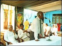 | Mr.Sivanandam is addressing the concluding event. Seated are Mr.Sivathasan and Mr.Puhendran