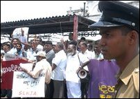 Sri Lanka Tamil Media Alliance (SLTMA), Working Journalists Association and the Muslim Media Forum participated in the protest organised by the Free Media Movement (FMM). The demonstration opposite the Fort Railway station started at 12 noon and continued for one hour. Journalists carrying placards urged the Deputy Minister to apologize to the media community for his behavior and to respect media freedom. The case was filed by the police Narcotic bureau against Malaka Manoj Silva, the son of Mervyn Silva, for attacking a group of police men at a five star hotel when they entered to check on drug users. Later on Monday the main suspect Malaka Manoj Silva and three others were released on bail.