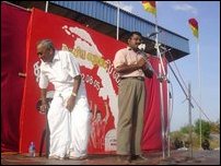 The conference, scheduled to start on 3:30 p.m, was begun at 4:15 p.m. following the explostion of the time-bomb. Sri Lankan troops were deployed in the area following the explosion. Mr. Jospeh Pararajasingham, the senior Batticaloa District Parliamentarian from the Tamil National Alliance is presiding over the conference. Father Rev. Joseph Mary of the Catholic church in Batticaloa and the Government Agent of Batticaloa district Mr. Velmurugu Sanmugam lit the traditional oil lamp. Mr. Narayanapillai, a father of three war-dead LTTE fighters, hoisted the Tamileelam national flag. LTTE's Batticaloa-Amparai Political Head, Mr. Ilanthirayan (Marshall), is attending the event on invitation by the organizers. Streets in Batticaloa town were decorated with yellow and red buntings amidst threats issued from the paramilitary groups operating in Sri Lanka Army controlled areas against the participation in the conference.