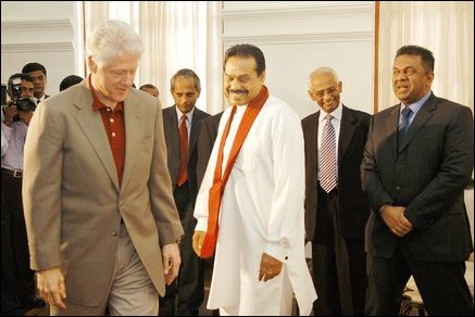 The former President of the US and UN special envoy on tsunami relief, Bill Clinton, currently in Sri Lanka as part of his his tour to South Asian countries, met with Sri Lankan President Mahinda Rajapaksa Tuesday at 11.20 a.m. at Sri Lanka Presidential residence, Temple trees, Colombo, sources said.