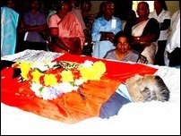 "We confer " Nattupattalar" title on late Mr.Gunaratnam for his services rendered to Tamil cause and against oppression of Tamils in the capital of Tamil nation, Trincomalee," said the statement of the LTTE. A condolence meeting was held Sunday evening before the body was taken to Vavuniya. The body of late Mr.Gunaratnam was brought to Trincomalee from Colombo Sunday early morning. The body will be kept in Vavuniya for public viewing on Monday. From there it would be taken to Killinochchi for public viewing. The body will be taken to Jaffna Tuesday evening from Killinochchi and the cremation will take place Wednesday morning at Kombayanmanal cemetery in Jaffna, family sources said.