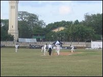 First day of the annual cricket match between Jaffna Central College and St.Johns College was played Thursday after the Principals of both schools hoisted the school flags at the Jaffna Central College grounds near the clock tower junction in Jaffna.