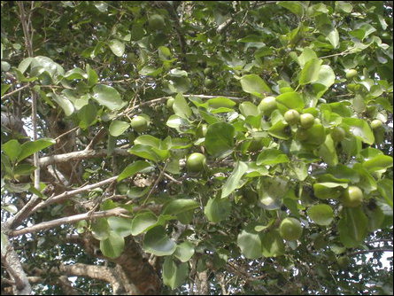 Kaagnchirai tree (Strychnos nux vomica), photographed in Vanni: Foliage and fruits [Photo: TamilNet]