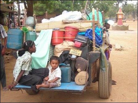 Internally displaced families in Moon'raampiddi and Ve'l'laangku'lam villages, located in the northern part of Mannaar district, were fleeing their villages and settlements Friday after artillery and mortar barrage from the Sri Lanka Army (SLA) that has approached Iluppaikkadavai, north of Vidaththaltheevu. Meanwhile, IDPs from the administrative areas of Maanthai West division of Mannaar district and Thu’nukkaay division in Mullaiththeevu district are undergoing severe hardships without proper accommodation and relief supplies in Karaichchi division of Ki'linochchi district.
