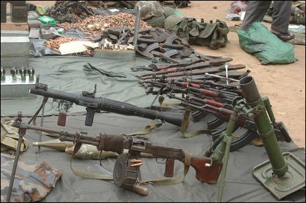 Arms and ammunition seized by the Tigers. [Photo: LTTE].