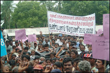 Demonstration to condemn the Sri Lankan government that denies food supplies to Vanni people
