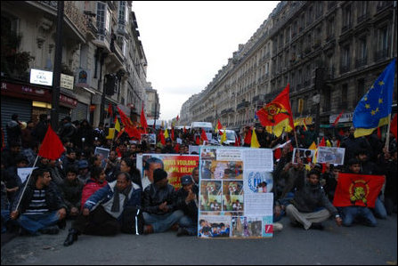 Several hundred French Tamils who gathered in front of the French Parliament Tuesday around 3:00 p.m to demonstrate in protest against the genocide of Tamils in Vanni in Sri Lanka were sent back by the French police even after obtaining official permission protest demonstration, sources in Paris said. The protestors, however, went ahead and started the demonstration in La Chapelle area where the crowd swelled to around 4000 persons, according to protesters.