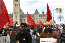 Protest by Canadian Tamil expatriates continued Saturday with several thousands joining the protest, CTV news broadcast announced. "The demonstrators, who arrived largely from Toronto and Montreal, are part of worldwide Tamil protests against what they describe as a deadly military offensive by the Sri Lankan military. Shouting "Tamil Tigers, freedom fighters," the protesters called on Canada to reverse its 2006 decision to list the Liberation Tigers of Tamil Eelam as a terrorist entity under the Anti-Terrorism Act. They are also calling for an immediate ceasefire," Canadian daily Globe and Mail reported.