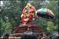 The annual festival in Nalloor, Jaffna, which begins on the sixth day after the July's New Moon, and is already in progress. The Nalloor festival which turns Jaffna into a virtual spiritual town has suffered under the occupation of Sri Lanka military of Jaffna district, and the continued imposition of curfew which prevents devotees from other parts of Jaffna to attend the festival. Mr Jeyakanthan, the lead wood sculpter who crafted the new chariot in the workshop in Colombo, attended the ceremony to inaugurate the chariot. Satguru Bodhinatha Veylanswami from the Hawaii Hindu Monastry presided the event. The Hawaii monastry was built by Subramaniyaswami, a disciple of Saint Yogaswami of Jaffna. Devotees also were collecting contributions to fabricate traditional carved doors with brass bells to replace the door in Sannathi Temple in Thondamanaaru, Jaffna.