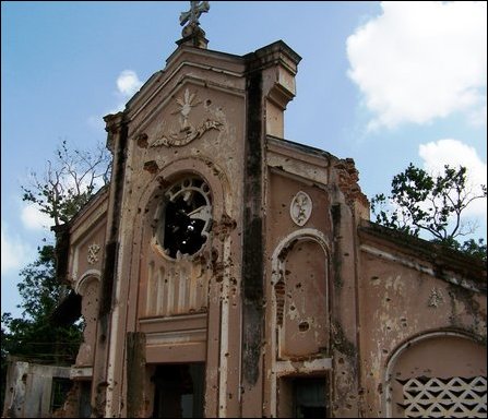 Jaffna Bishop has emphasized in his appeal to the Holy Pope the need for the clergy to be allowed to go the churches in Vanni and to at least start the preliminary renovation work of the churches immediately. Jaffna Bishop, shocked on seeing the churches severely damaged or totally destroyed in war, was further shaken to find them plundered with most of the holy statues in the churches reduced to pieces or removed. The Bishop has appealed to the Holy See to conduct talks with the Sri Lanka government to expedite the renovation of destructed churches in Vanni. Historically famous Mullaiththeevu St. Joseph Church has been completely destroyed with the holy statue, thrown out of its enclosed pedestal, lying abandoned on the floor, Bishop House sources said. Besides, the tiles and other similar properties of the church had been pilfered, they added.