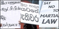 The elections in Jaffna are going to be held under martial law. It is therefore important to fight back, calling to repeal the Prevention of Terrorism (PTA) and Emergency Regulations, the demonstrators said.