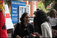 Rabbi Alexandra Wright, of LJS(l) chats with demonstrator