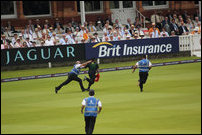 As nonplussed English batsmen and Sri Lankan fielders watched, Lord’s stewards chased after the athletic youth, to laughter from England supporters and fury from some Sri Lankan spectators.