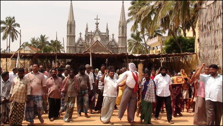 Bihar Chief Minister Nitish Kumar received the visiting SL president at the Gaya international airport, accompanied by his wife and close confidantes. Mahinda Rajapaksa's first pilgrimage destination was Bodh Gaya, where Gautama Buddha is said to have attained Enlightenment. From there, he was scheduled to visit the Hindu pilgrimage temple of Tirupati situated in Andhra Pradesh, news reports in India said. The SL president was also on similar pilgrimage trips to India during the war against Eezham Tamils. Tamil activists throughout Tamil Nadu staged protests against Rajapaksa's visit to India. The people of Idinthakarai, who are on a continuous struggle against the Koodangku'lam nuclear power plant project, staged an emotional protest burning the effigy of the SL president.  Protestors at Idinthakarai