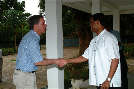 Mr. Keith Locke, MP, Green Party, New Zealand meeting LTTE Political Head Mr S. P. Thamilchelvan in 2003 at Ki'linochchi [TamilNet File photo]