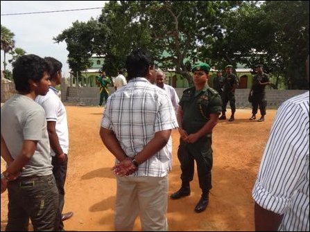 The journalist, who had earlier visited the island and authored an article in Junior Vikatan, was this time visiting the island on tourist visa to make a round trip as a visitor to North and East. TNA parliamentarian Sritharan had a meeting with the people of Ponnaave’li around 11:00 a.m. and was visiting Vearavil, Ponnaave’li and Valaippaadu villages in Muzhangkaavil area. The accompanying visitor from Tamil Nadu had also taken some photographs of the living condition of the people in these villages. More than 50 Sri Lanka Army soldiers surrounded the church around 1:30 p.m. and detained the journalist together with the TNA politicians. The SL military seized the cameras from the politicians and the visitor while the SL police took them to Jeyapuram Police station. After more than 4 hours of the interrogation at the police station, the TNA parliamentarian and the councillors were released after their cameras were inspected. The TNA politicians were later released, but Thamizh Prabhagaran was detained. He has been subjected to lengthy interrogations by the SL military intelligence operatives, informed sources said. His communication with outside world has been cut off. In recent times, the SL military intelligence operatives, deployed in the name of ‘Terrorist Investigation Department’ of the SL police, have been harassing, detaining and deporting journalists and other activists who visit the island in tourist visa and interact with local journalists or politicians in the North and the East. Questioning the motive of Colombo’s interrogators, the NPC councilor Mr Pasupathipillai blamed the SL military and police for banning the interaction between the tourists and the people in the North. He also questioned why those on tourist visa cannot be present with the democratically elected representatives of the people while they were touring the North.