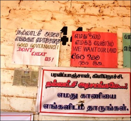 Tamil families who went on a continuous protest last month in front of occupying SL military's cantonment at Paravip-paagnchaan, a fertile suburb of Ki'linochchi town, initially called of their struggle after 5 days after Opposition Leader R. Sampanthan, who engaged in the process of containing Eezham Tamils from confronting the SL military on behalf of SL Prime Minister Ranil Wickramasinghe, met them and talked to SL Defence Secretary over the phone conveying the demands of those engaged in the struggle. The SL Defence Secretary had asked 2 weeks time and the time had elapsed on 31st August. The families demanding their lands to be released restarted their continuous struggle on 01st September. As a week has gone, they decided to transform their struggle into a continuous fast starting from Wednesday.