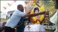 Students paying tribute to Lt Col Thileepan at the University of Jaffna