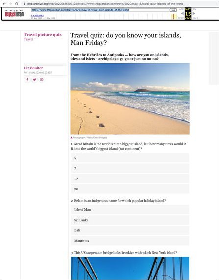 Travel quiz by The Guardian [Courtesy: Snapshot by the Internet Archive/ Wayback Machine]