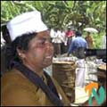 | The leader of the CWC's Women's Wing, Ms. Christy Anthony, addressing the crowds at the Satyagraha Tuesday afternoon. She charged that the tea estate companies were deliberately showing losses and thereby denying the workers their due wages. |
