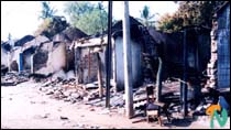 | Tamil shops and buldings burnt by Islamic extremists in the Valaichenai bazaar during curfew imposed by Sri Lanka Police. |