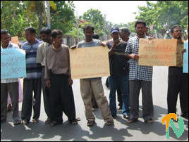 Ceylon Tamil Teachers Union and Kattankudy Peoples Organisation also participated in the sit-in-protest. Heated argument ensued between the demonstrators and the Police when the latter attempted to disperse the crowd sitting across the road. The Police insisted that the demonstrators should not block the traffic. However, the President and Secretary of the East Lanka Journalists Association Messrs R.Thurairatnam and Shan Thavarajah agreed to call off the sit in protest after half an hour. The Police allowed the sit in protest thereafter. Demonstrators were seen holding several placards condemning the attack.