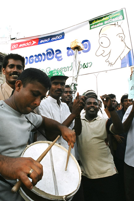 Demonstrators sing anti-government songs