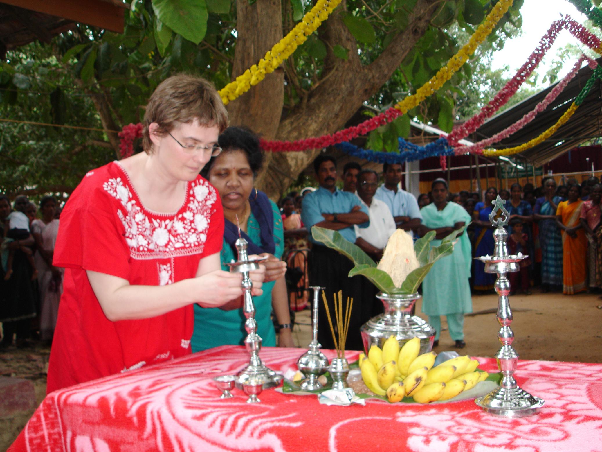 Norway representative Ms. Mildrid Mikkelsen lighting traditional lamp.