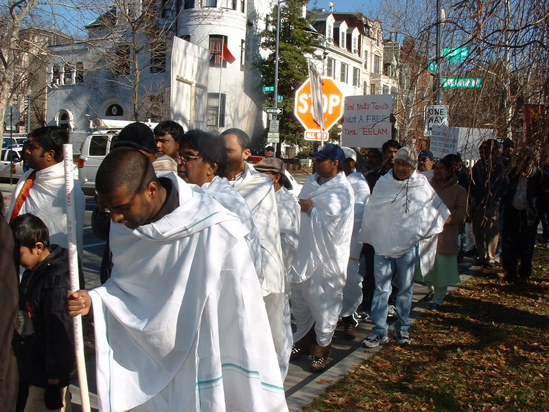 Demonstrators wearing Gandhi attire