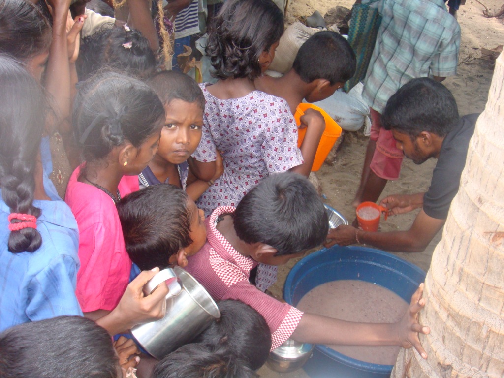 Children waiting for kagnchi (ilaik-kagnchi) at Puthumaaththa'lan on New Year Day