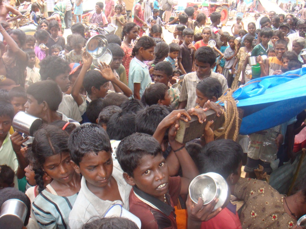 Children waiting for kagnchi (ilaik-kagnchi) at Puthumaaththa'lan on New Year Day