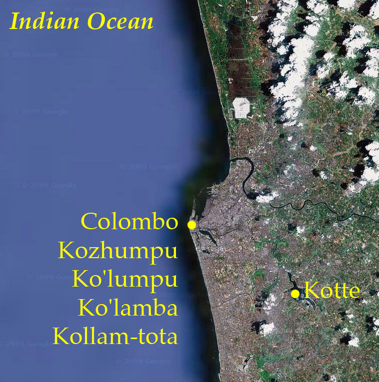 Location of Colombo and Kotte [Satellite image courtesy: Google]