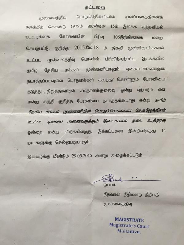 The court order given to TNPF by the SL Police