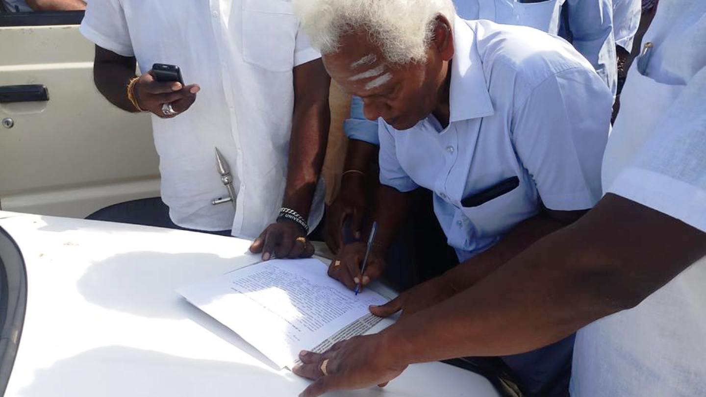 Landowner objects to surveying lands signs at an appeal letter addressed to SL President
