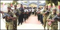 20521 matching reports found. Showing 11901 - 11920 [TamilNet, Monday, 17 July 2006, 00:05 GMT]Tamils are seeing their community as the primary targets of Sri Lanka’s plans to seize money from ‘dormant’ bank accounts as the mass displacement of the conflict which has affected one in four Tamils has left many without the necessary paper work of physical access to banks. Meanwhile, the Financial Times, one of the world leading financial newspapers, in an editorial last week, criticised the notion of seizing money from dormant accounts as not making economic sense and duplicitous. Full story >> [TamilNet, Sunday, 16 July 2006, 18:06 GMT]![LTTE leader paying homage to LTTE's first commander, Lt. Seelan, from Trincomalee [Photo: LTTE]](/img/publish/2006/07/16_07_06_vanni_front.jpg) Mr. V. Pirapaharan, the leader of the Liberation Tigers of Tamil Eelam (LTTE) participated in the twenty third memorial anniversary of Charles Anthony, from Trincomalee, one of the first commanders of the LTTE who died in 1983. Mr. Pirapaharan addressed more than a hundred senior level field leaders of two artillery units that completed training. The LTTE leader payed homage to Lt. Seelan, Ananth and other five cadres and awarded merit certificates to the officers who had completed training at an undisclosed location in Vanni Sunday, LTTE sources said. Full story >> [TamilNet, Sunday, 16 July 2006, 15:26 GMT] The Sri Lankan President Mahinda Rajapakse, upon failing to meet the committments given by Sri Lanka delegation at Geneva I, has adopted a "choking tactic" to stifle current trajectory towards peace by launching a one-sided expert panel, to waylay the International Community, and to avoid Geneva II, said K. Kaviyalahan, the Head of Tamileelam Political Research Centre (TEPRC), the emerging Think Tank of the Liberation Tigers, in the weekly political analysis programme, Nilavaram, aired by the National Television of Tamileelam (NTT) Sunday night. Rajapaskse's new agenda circumvents the existing paradigm of the four and a half years old peace process, he argued. Full story >> [TamilNet, Sunday, 16 July 2006, 14:53 GMT] Twenty third death anniversary of Charles Anthony (nom de guerre Lt Seelan), the LTTE first martyr from Trincomalee district and the first attack commander of the LTTE, was observed Saturday evening at Lt.Seelan Memorial Hall in Muttur east. Mr.S.Elilan, LTTE Trincomalee district political head delivered the keynote address, sources said.